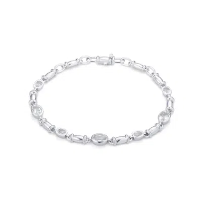 Women's White Topaz Gemstone Chain Silver Bracelet