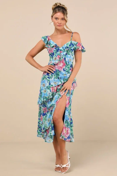 Cosima Blue Floral Asymmetrical Midi Dress