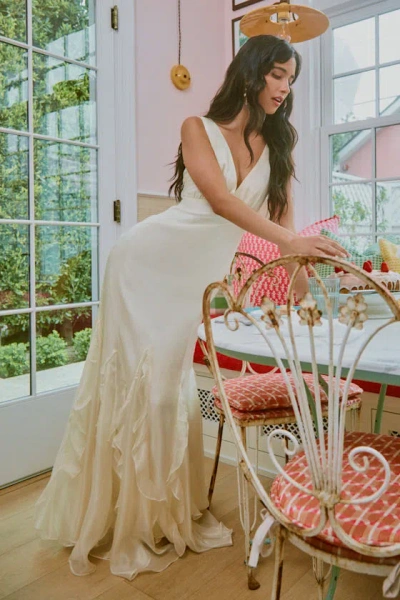 Deluca Ivory Sleeveless Ruffled Maxi Dress In White