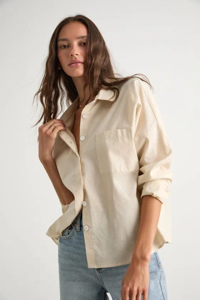 Amelia Dawn Beige Long Sleeve Button-up Top In Neutral