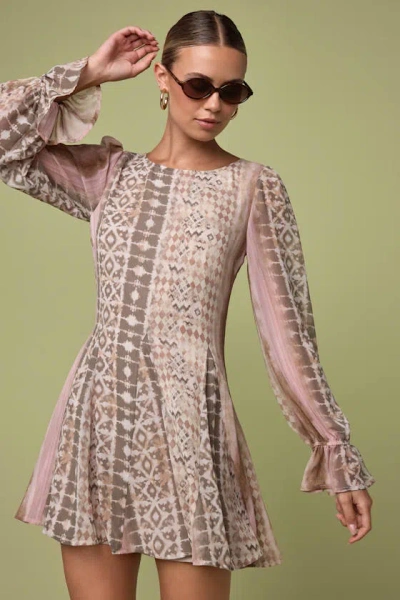 Kivah Pink And Taupe Boho Print Long Sleeve Mini Dress In Brown
