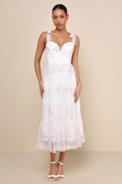 Distinctly Sweet White Floral Embroidered Tie-strap Midi Dress