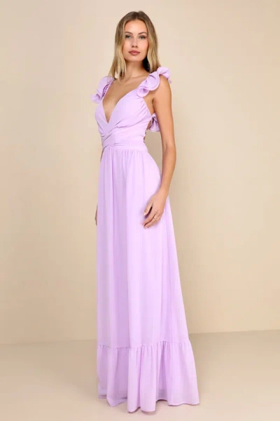 Soiree Celebration Lilac Ruffled Lace-up Maxi Dress