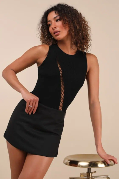 Jalani Black Ribbed Cutout Sleeveless Bodysuit