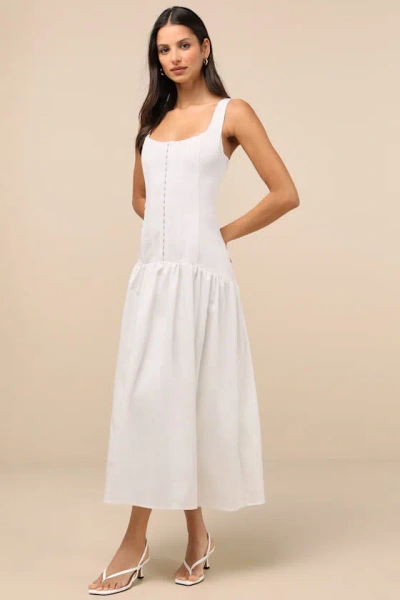 Odetta White Burnout Puff Sleeve Lace-up Midi Dress