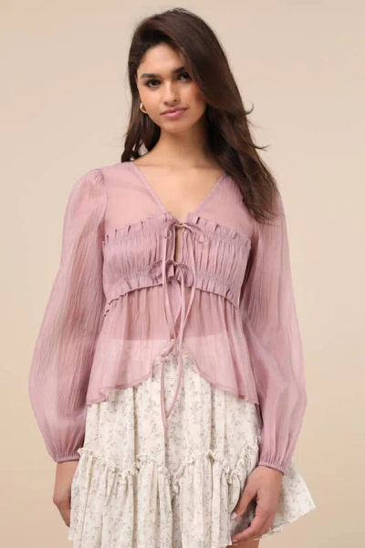 Kyler Mauve Sheer Tie-front Long Sleeve Top