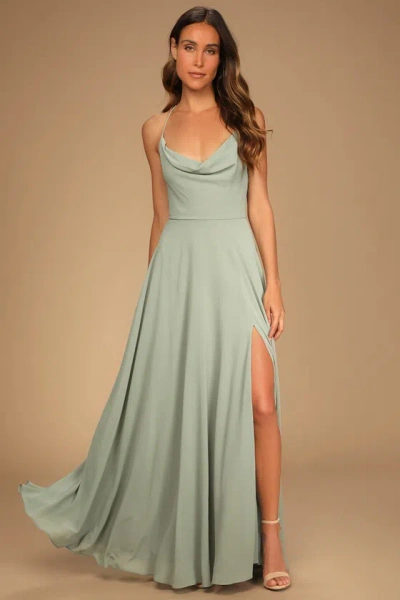 Romantically Speaking Sage Green Cowl Lace-up Maxi Dress