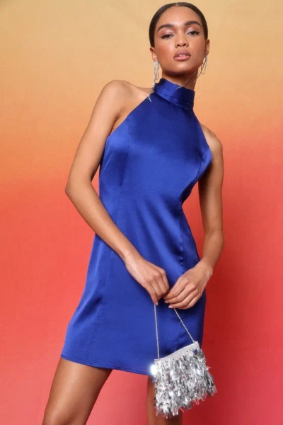 Infinite Admiration Royal Blue Satin Halter Mini Dress