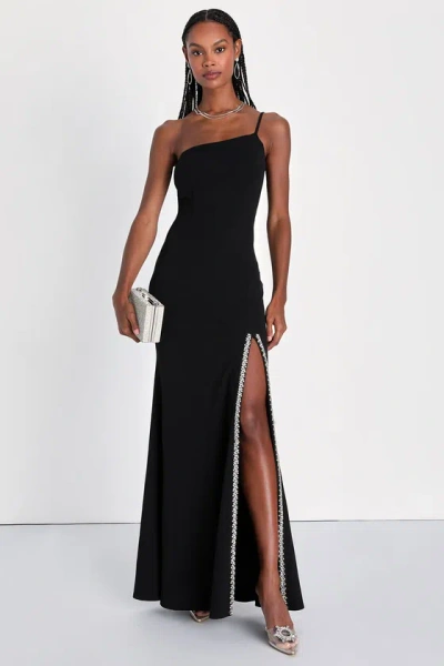 Absolutely Sensational Black Rhinestone One-shoulder Maxi Dress