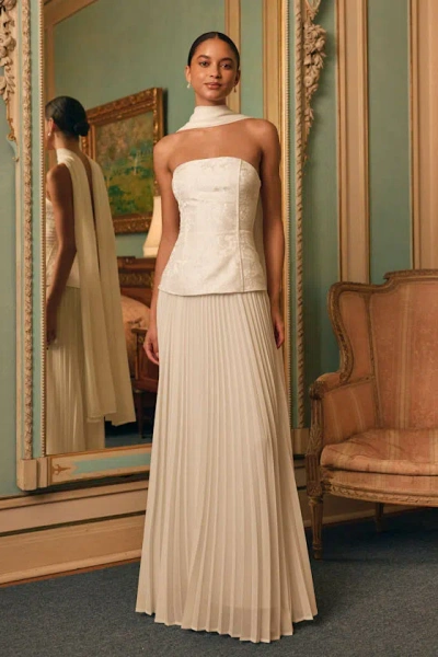 Eloise White Jacquard Pleated Maxi Dress And Scarf Set