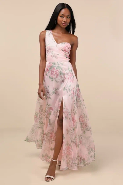 Truly Extraordinary Pink Floral Organza One-shoulder Maxi Dress