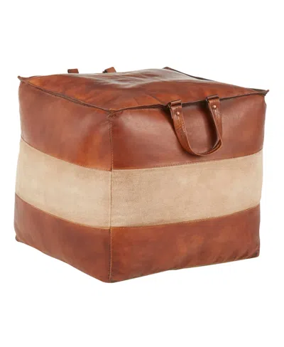 Cobbler Industrial Pouf In Leather And Canvas By In Brown