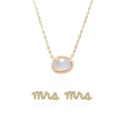 Women's Bride Moonstone Gift Set - Earrings & Necklace - Gold Plated