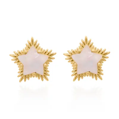 Women's Gold / White Felicity Moonstone Spiky Star Stud Earrings