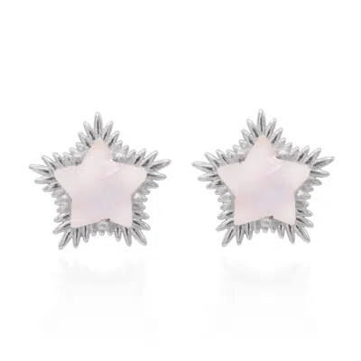Women's White / Silver Felicity Moonstone Spiky Star Stud Earrings