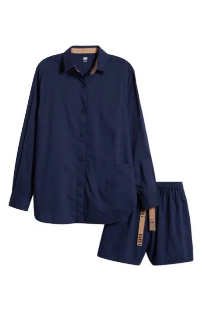 Airy Cotton & Silk Curve Hem Short Pajamas In Deep Blue