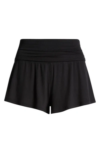 Rib Foldover Waist Pajama Shorts In Black