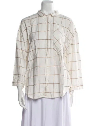 Pre-owned Plaid Print Mock Neck Button-up Top In Neutral