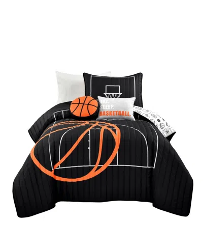 Kids Basketball Game 4-pc. Quilt Set, Twin/twin Xl In Black,orange