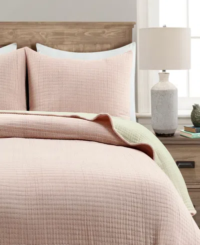 Solid Kantha Pick Stitch Yarn Dyed Cotton Woven 3-piece Quilt Set, King In Blush