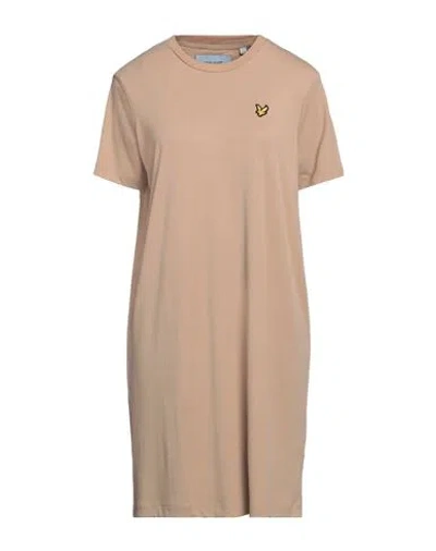 Woman Mini Dress Camel Size 6 Modal, Polyester In Beige