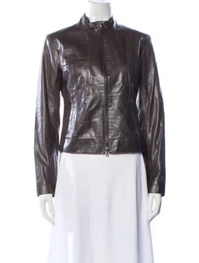 Pre-owned Leather Biker Jacket In Gray