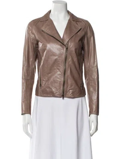 Pre-owned Leather Biker Jacket In Neutral