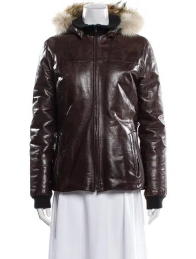 Pre-owned Leather Faux Fur Coat In Brown