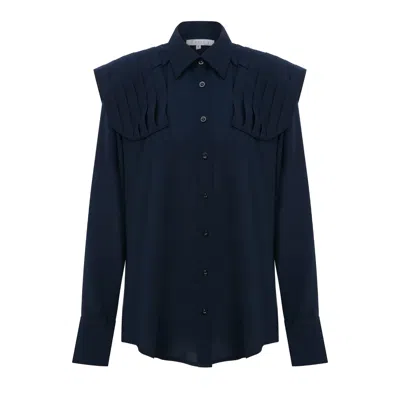 Women's Shirt With Hidden Buttoned Flywheel Detail - Blue Winds Of Winter