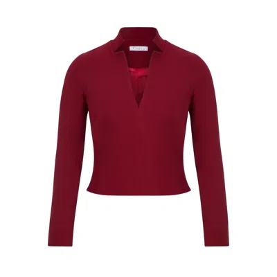 Women's Red High Neck Long Sleeve Burgundy Blouse - Pearl Wings