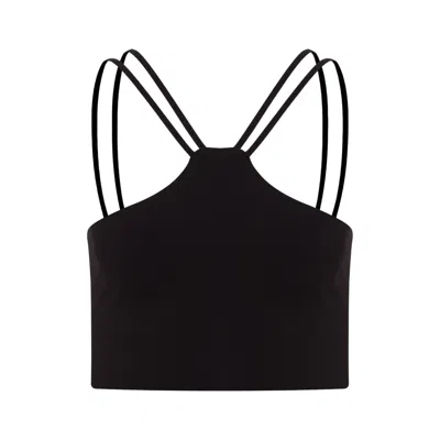 Women's Deep V-neck, Sleeveless Black Blouse - Bow And Arrow Harmony