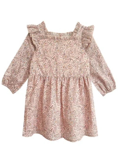 Babies' Mabel And Honey Phoebe Toddler Long-sleeve Plaid Dress With Wood-style Buttons, Pink. In Multi