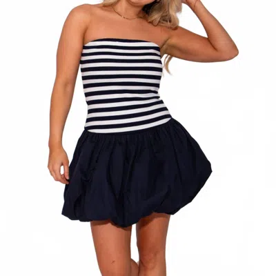 Nautical Striped Strapless Bubble Mini Dress In Multi