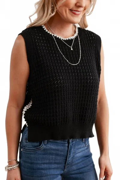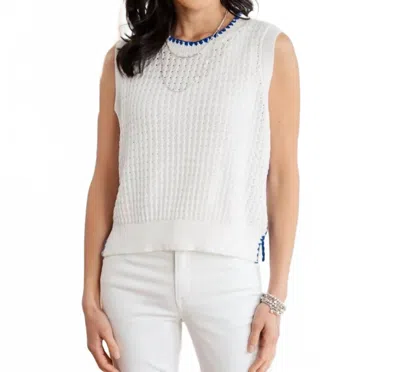 Boarder Crochet Sleeveless Sweater In White In Multi