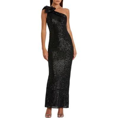 One Shoulder Cape Sleeve Embellished Gown In Black