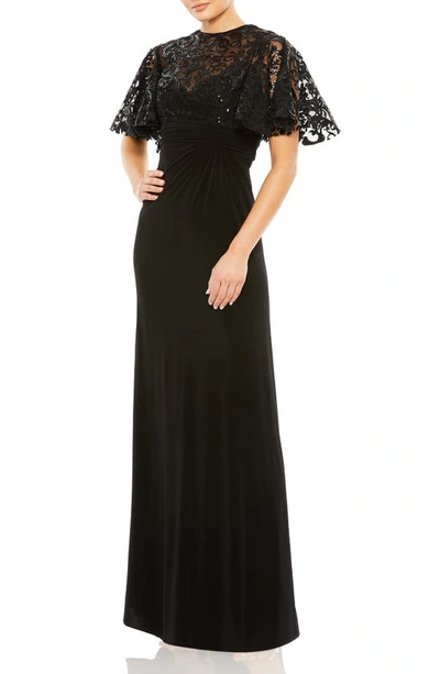 Embellished Butterfly Cape Sleeve Jersey Gown In Black