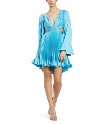 Pleated V-neckline Cutout Long Sleeve Mini Dress In Turquoise