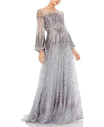 Jewel Encrusted Illusion Long Sleeve A Line Gown In Platinum