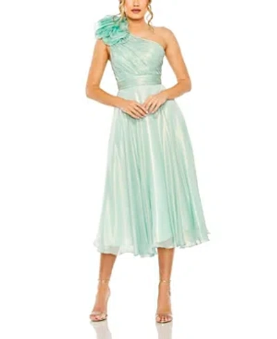 Lace 3d Flower Fitted Short Sleeve Midi Dress In Green