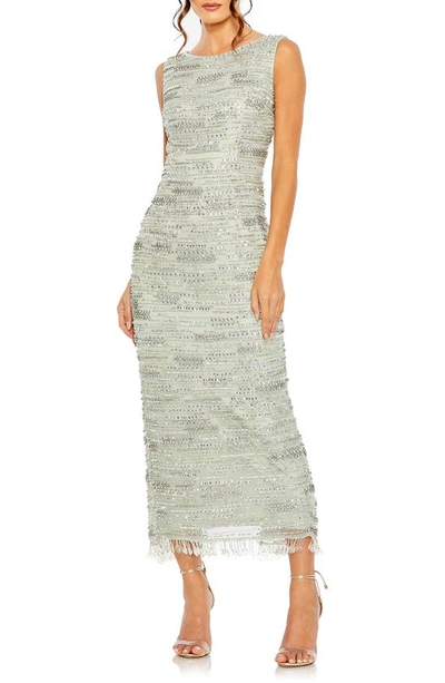 Crystal Detail Sleeveless Column Cocktail Dress In Sage