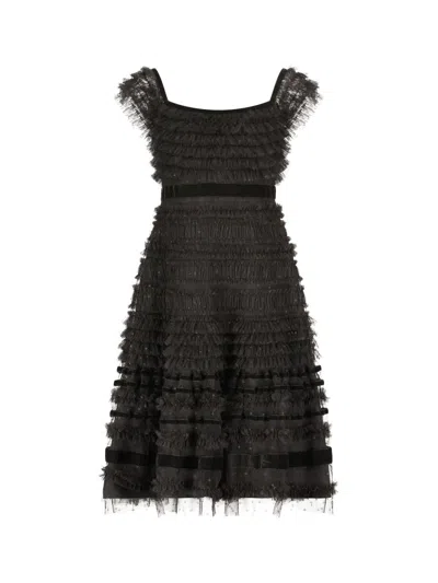 Little Girl's & Girl's Ruffled Velvet-trimmed Dress In Black