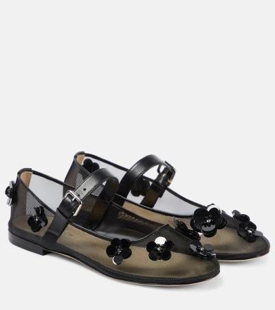Sequined Floral-appliqué Mary Jane Flats In Black