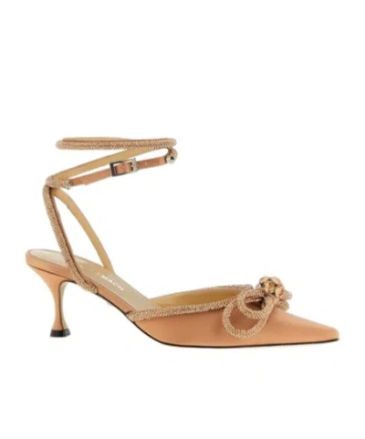 Floating Crystal Bow Embellished Satin And Pvc Sandals In Pink