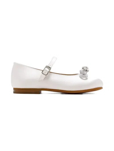 Kids' Satin Crystal-bow Ballet Flats In White