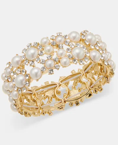 Crystal & Imitation Pearl Statement Stretch Bracelet In Gold