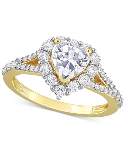 Lab-grown White Sapphire Heart Ring (2-2/5 Ct. T.w.) In Yellow-plated Sterling Silver In Gold
