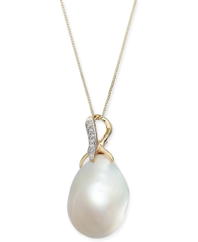Baroque Cultured Freshwater Pearl (13mm) & Diamond Accent 18" Pendant Necklace In 14k Gold In Yellow Gold