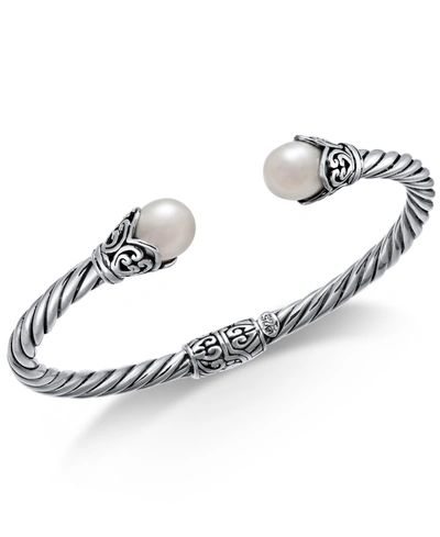 Cultured Freshwater Pearl (10mm) Filigree Cuff Bangle Bracelet In Sterling Silver