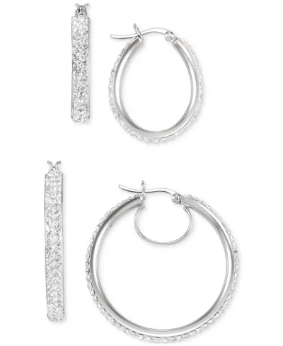 2-pc. Set Crystal Pave Oval & Round Hoop Earrings In Silver