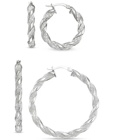 2-pc. Set Glitter Small & Medium Twist Hoop Earrings In Sterling Silver